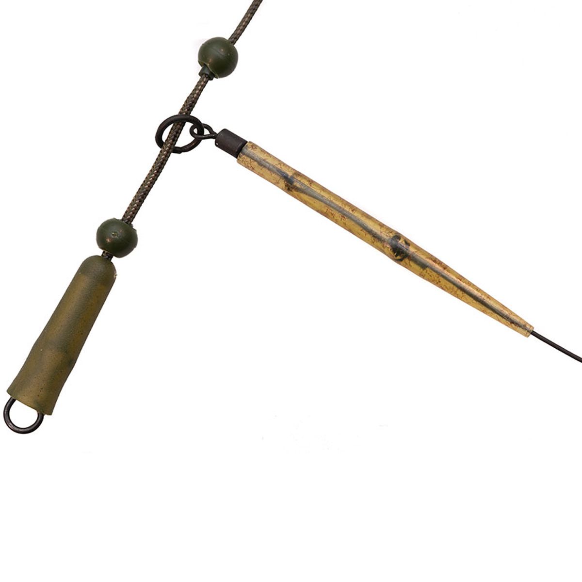 Además, su capacidad para alinear el anzuelo y el bajo de línea garantiza presentaciones más agresivas y efectivas, favoreciendo clavadas rápidas y seguras incluso frente a carpas muy recelosas. La combinación del diseño con el color camuflado hace que el montaje pase desapercibido en el entorno, ofreciendo una presentación natural y convincente.