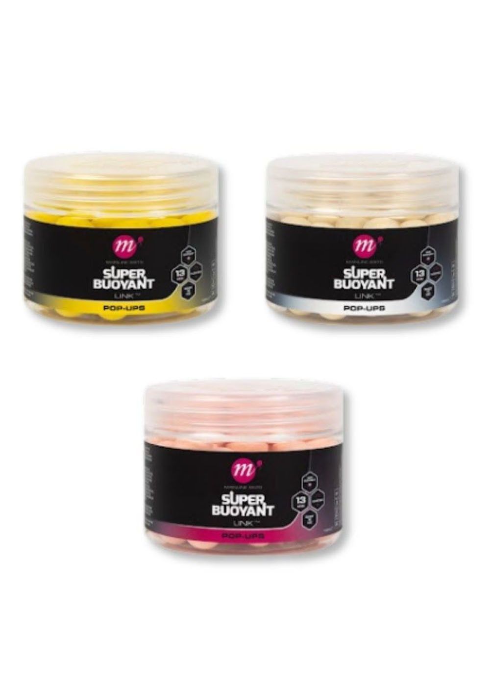 Los pop-ups están disponibles en 13 mm y en colores llamativos: amarillo, rosa y blanco. Además, se pueden elegir entre cuatro perfiles de sabor: Cell, Essential Cell, Link e ISO Fish. Por consiguiente, puedes adaptar la elección según las condiciones de pesca y las preferencias de los peces.